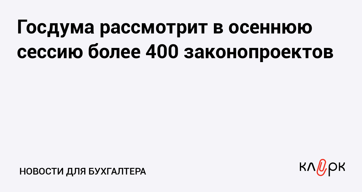 Госдума рассмотрит в осеннюю сессию более 400 законопроектов