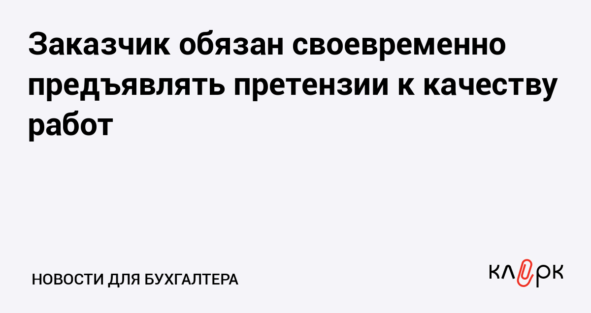 Заказчик обязан своевременно предъявлять претензии к качеству работ