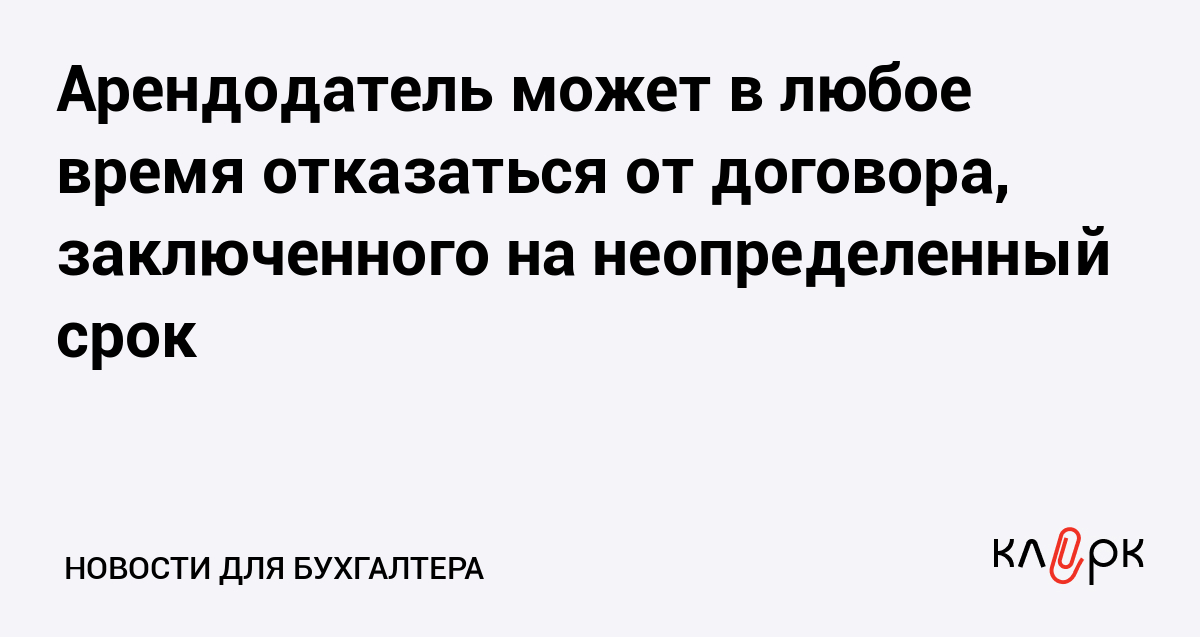 Арендодатель может в любое время отказаться от договора, заключенного на неопределенный срок