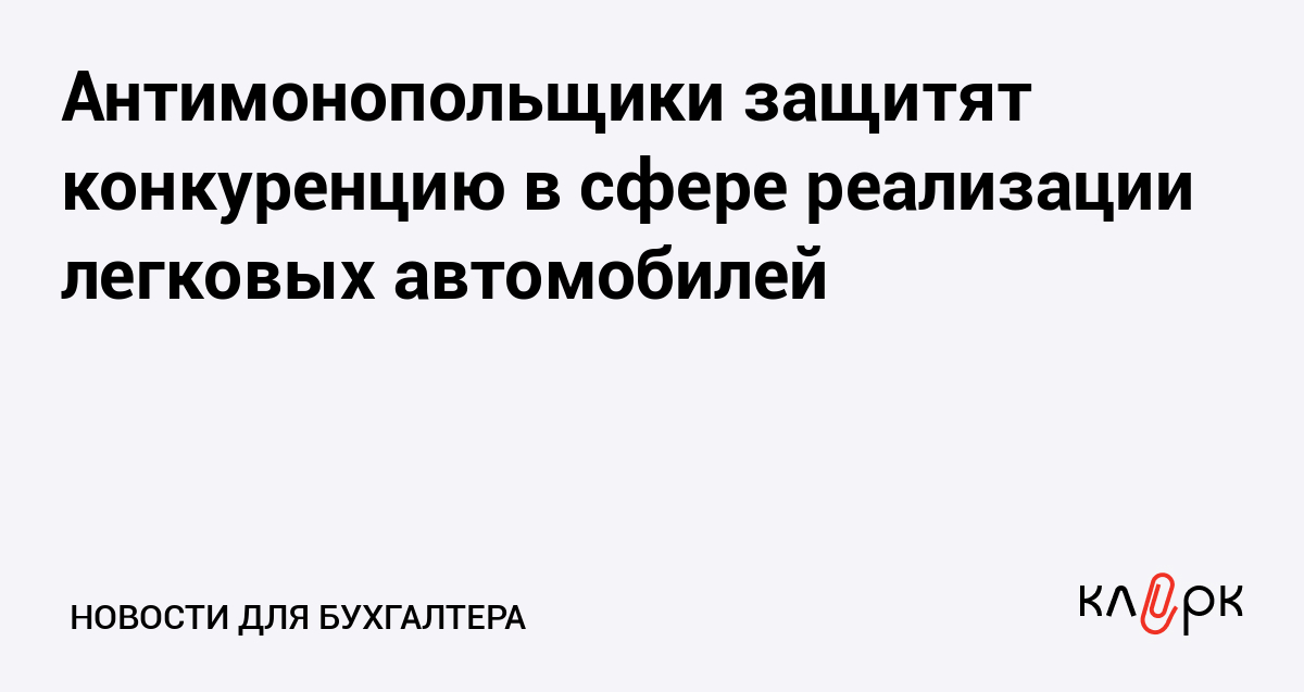 Антимонопольщики защитят конкуренцию в сфере реализации легковых автомобилей