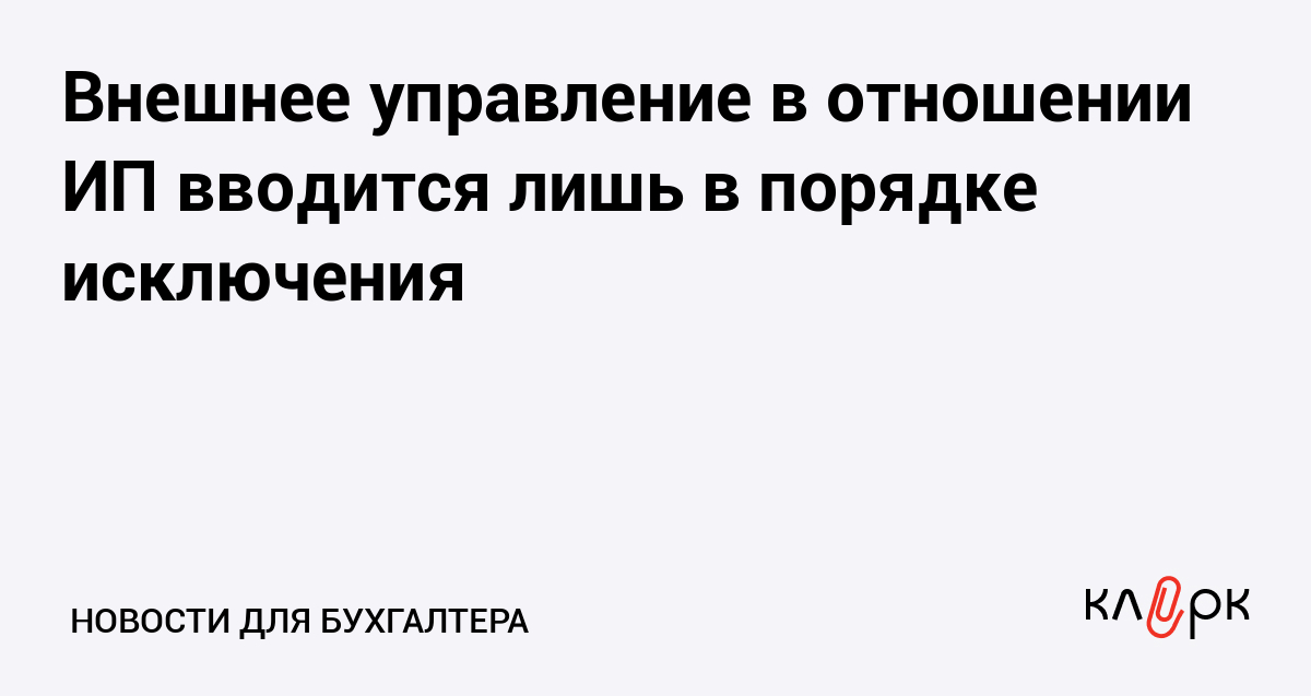 Внешнее управление в отношении ИП вводится лишь в порядке исключения