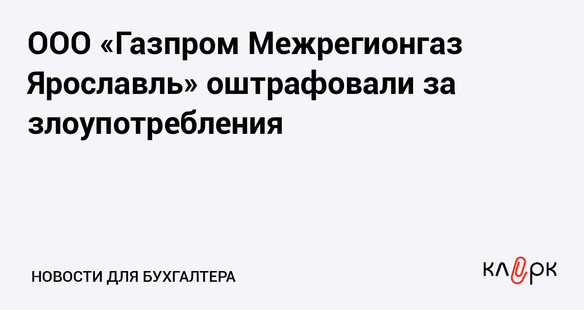 ООО «Газпром Межрегионгаз Ярославль» оштрафовали за злоупотребления
