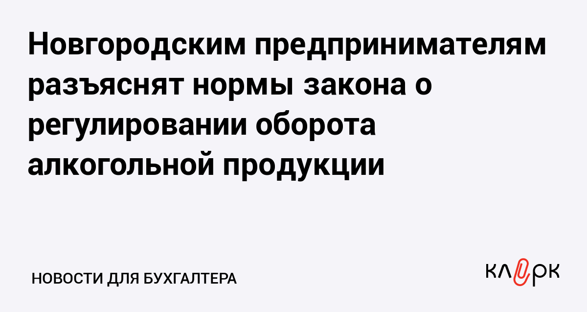 Новгородским предпринимателям разъяснят нормы закона о регулировании оборота алкогольной продукции