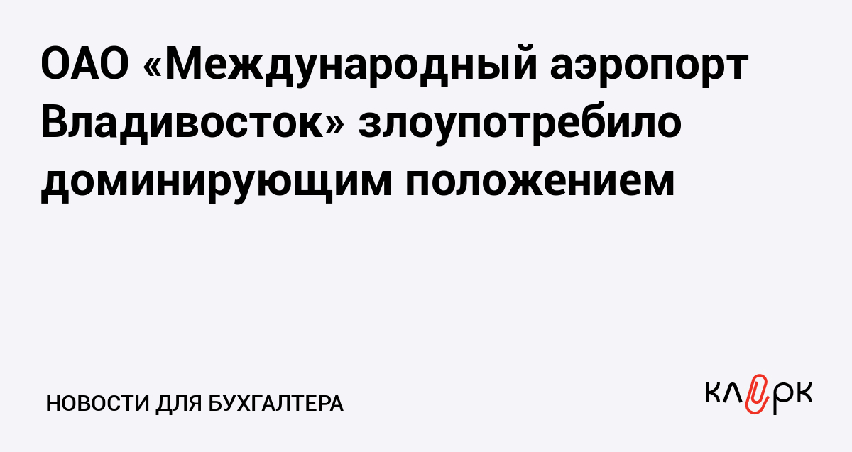 ОАО «Международный аэропорт Владивосток» злоупотребило доминирующим положением