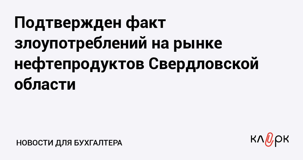 Подтвержден факт злоупотреблений на рынке нефтепродуктов Свердловской области