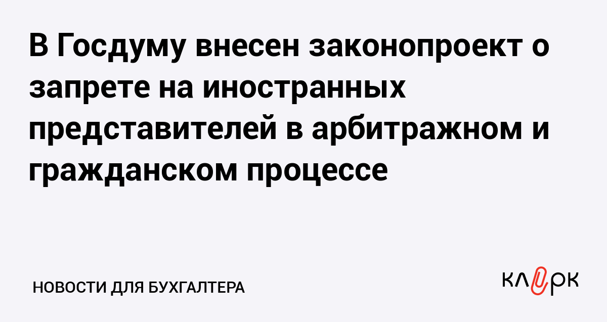 В Госдуму внесен законопроект о запрете на иностранных представителей в арбитражном и гражданском процессе