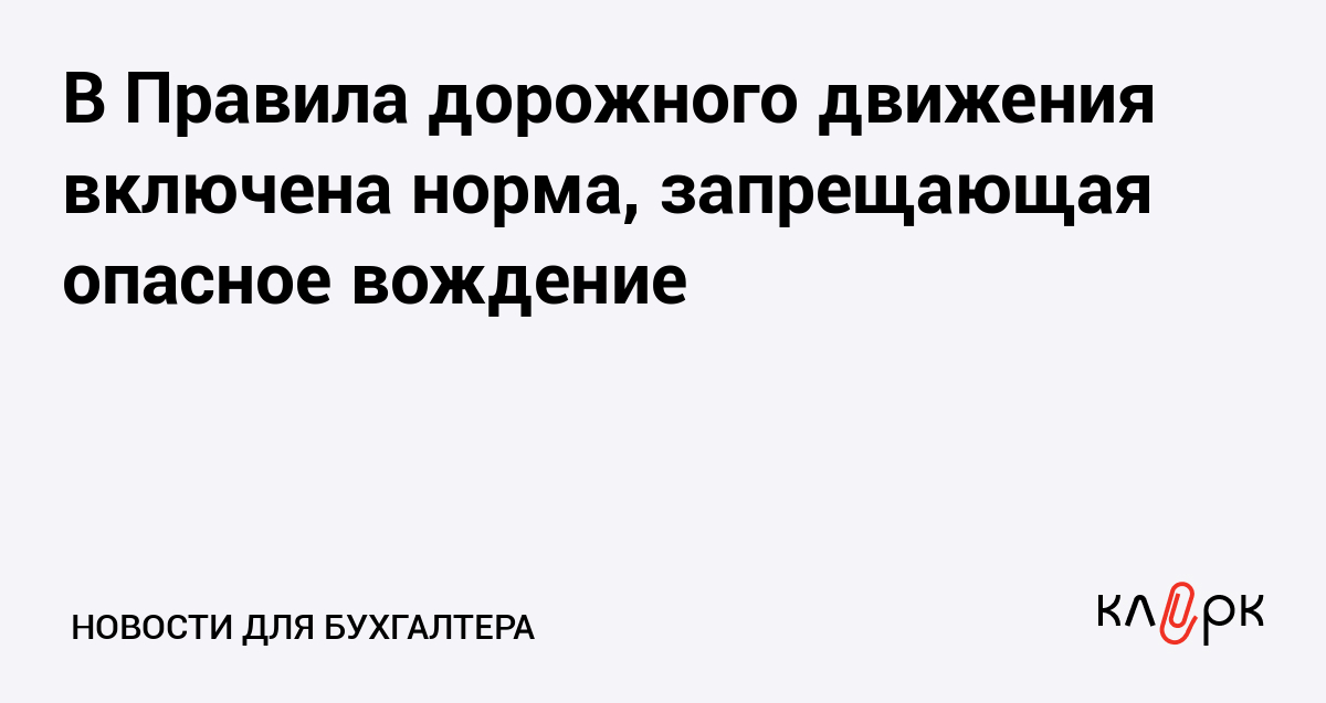 В Правила дорожного движения включена норма, запрещающая опасное вождение