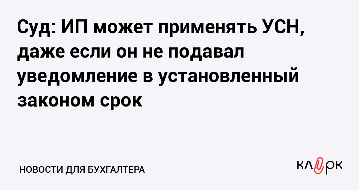 Суд: ИП может применять УСН, даже если он не подавал уведомление в установленный законом срок