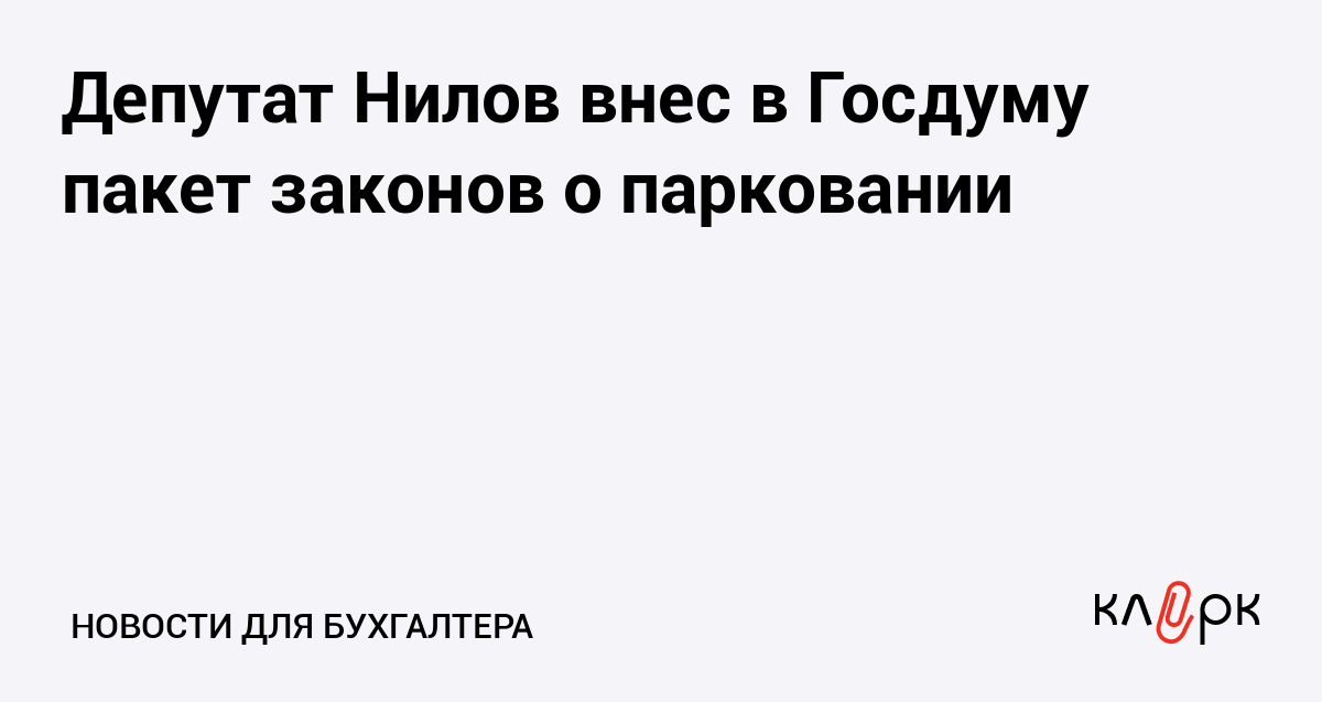 Депутат Нилов внес в Госдуму пакет законов о парковании