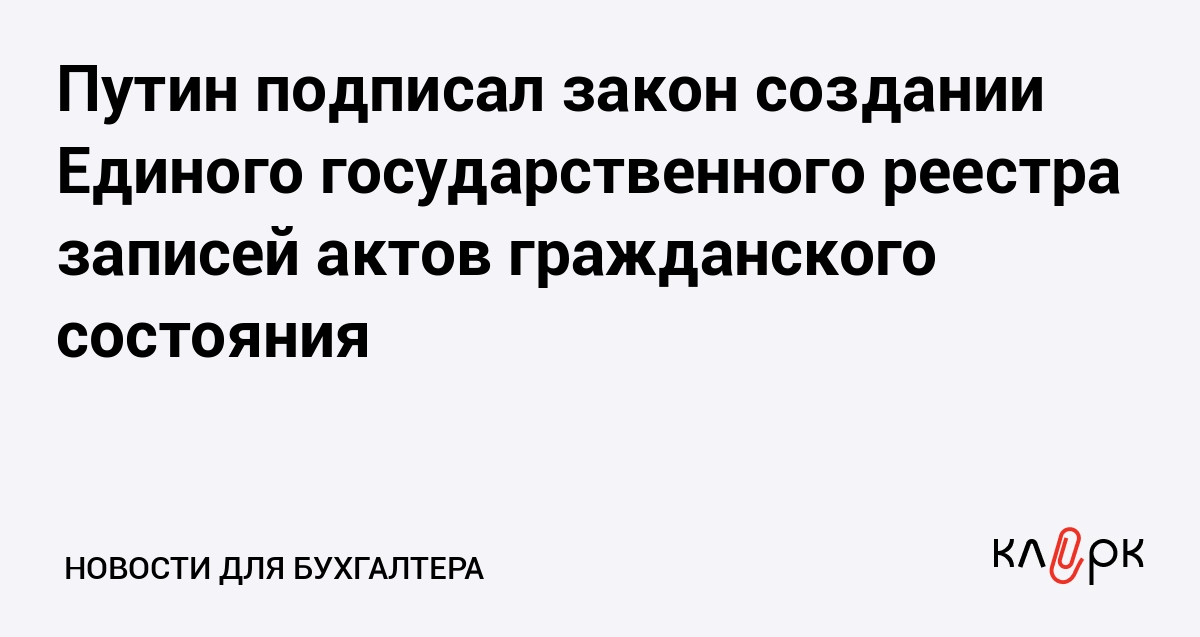 Путин подписал закон создании Единого государственного реестра записей актов гражданского состояния