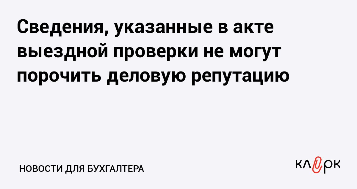 Сведения, указанные в акте выездной проверки не могут порочить деловую репутацию