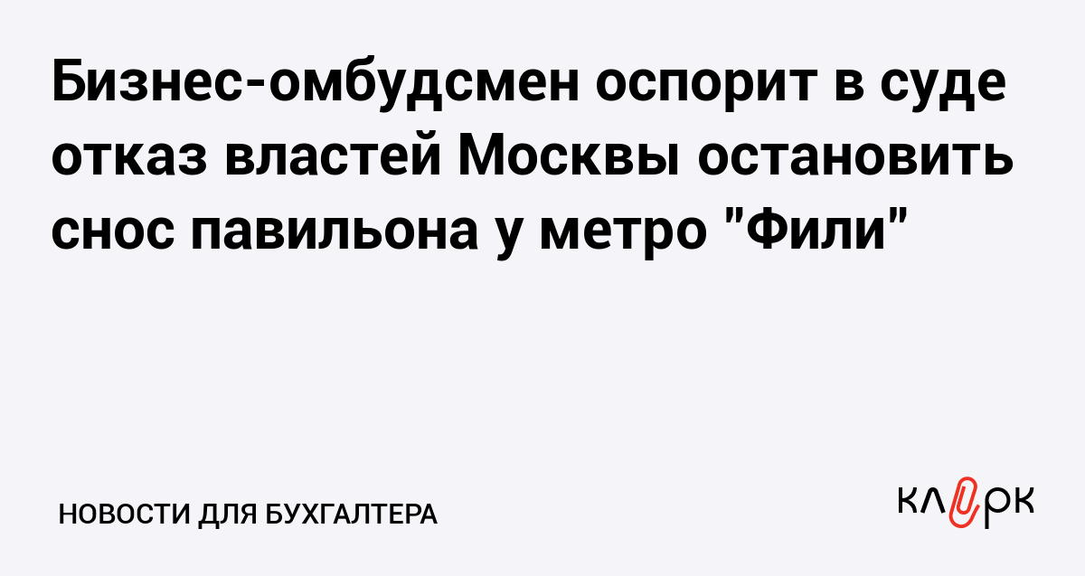 Бизнес-омбудсмен оспорит в суде отказ властей Москвы остановить снос павильона у метро "Фили"