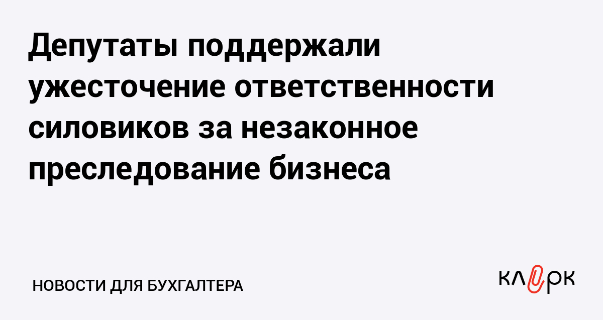 Депутаты поддержали ужесточение ответственности силовиков за незаконное преследование бизнеса