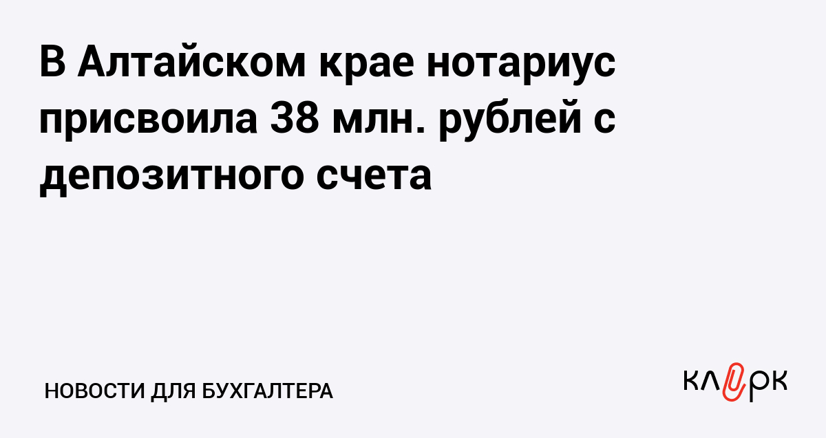 В Алтайском крае нотариус присвоила 38 млн. рублей с депозитного счета