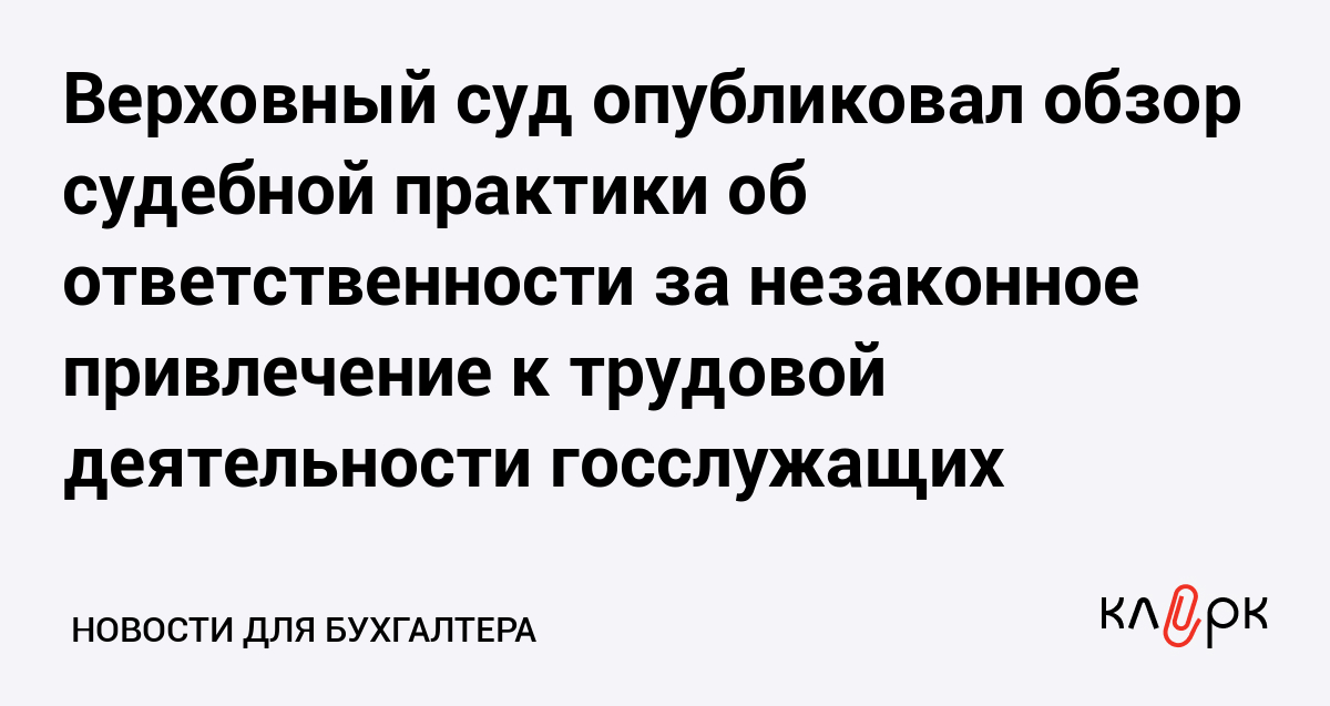 Верховный суд опубликовал обзор судебной практики об ответственности за незаконное привлечение к трудовой деятельности госслужащих