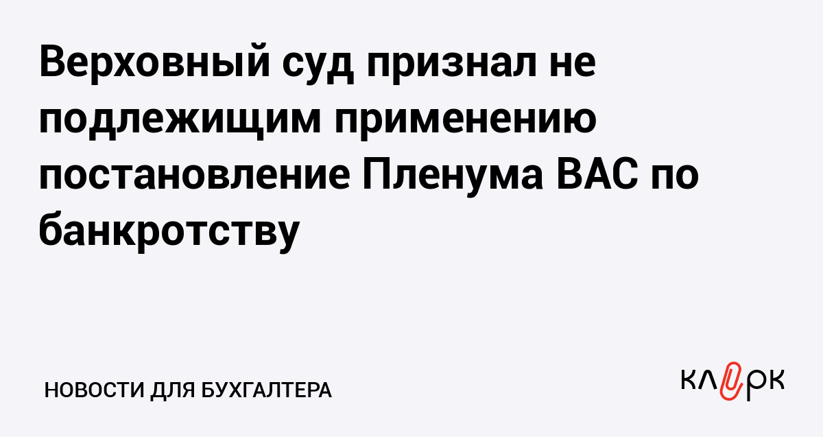 Верховный суд признал не подлежищим применению постановление Пленума ВАС по банкротству