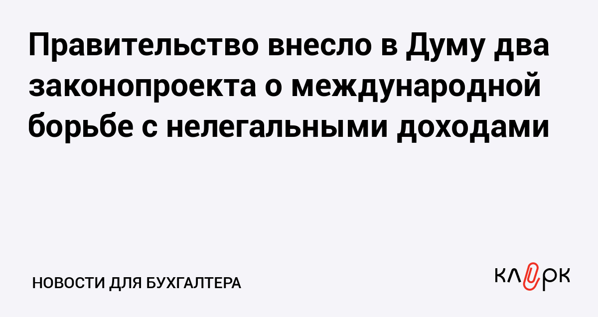 Правительство внесло в Думу два законопроекта о международной борьбе с нелегальными доходами