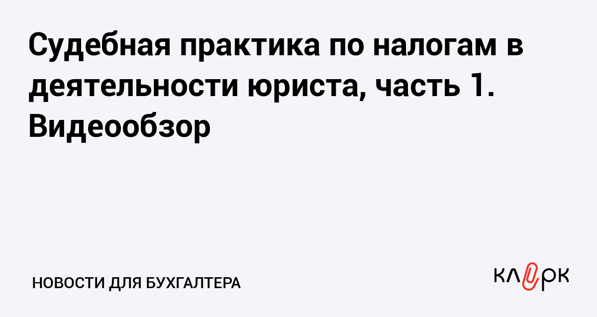Судебная практика по налогам в деятельности юриста, часть 1. Видеообзор