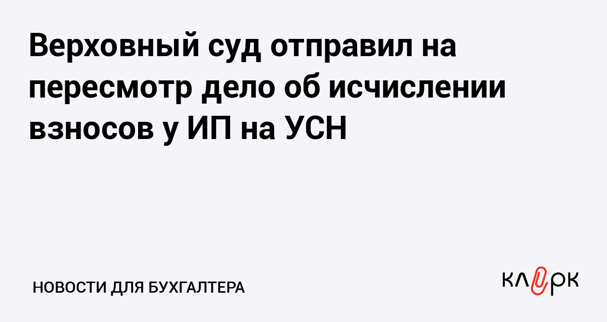 Верховный суд отправил на пересмотр дело об исчислении взносов у ИП на УСН