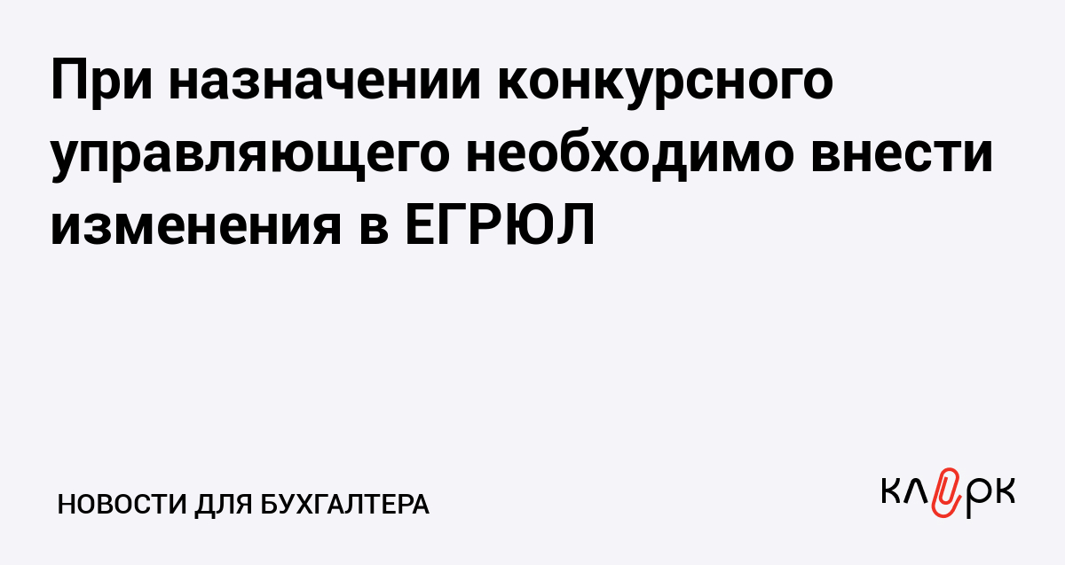При назначении конкурсного управляющего необходимо внести изменения в ЕГРЮЛ