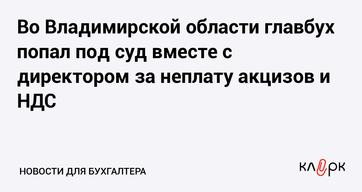 Во Владимирской области главбух попал под суд вместе с директором за неплату акцизов и НДС