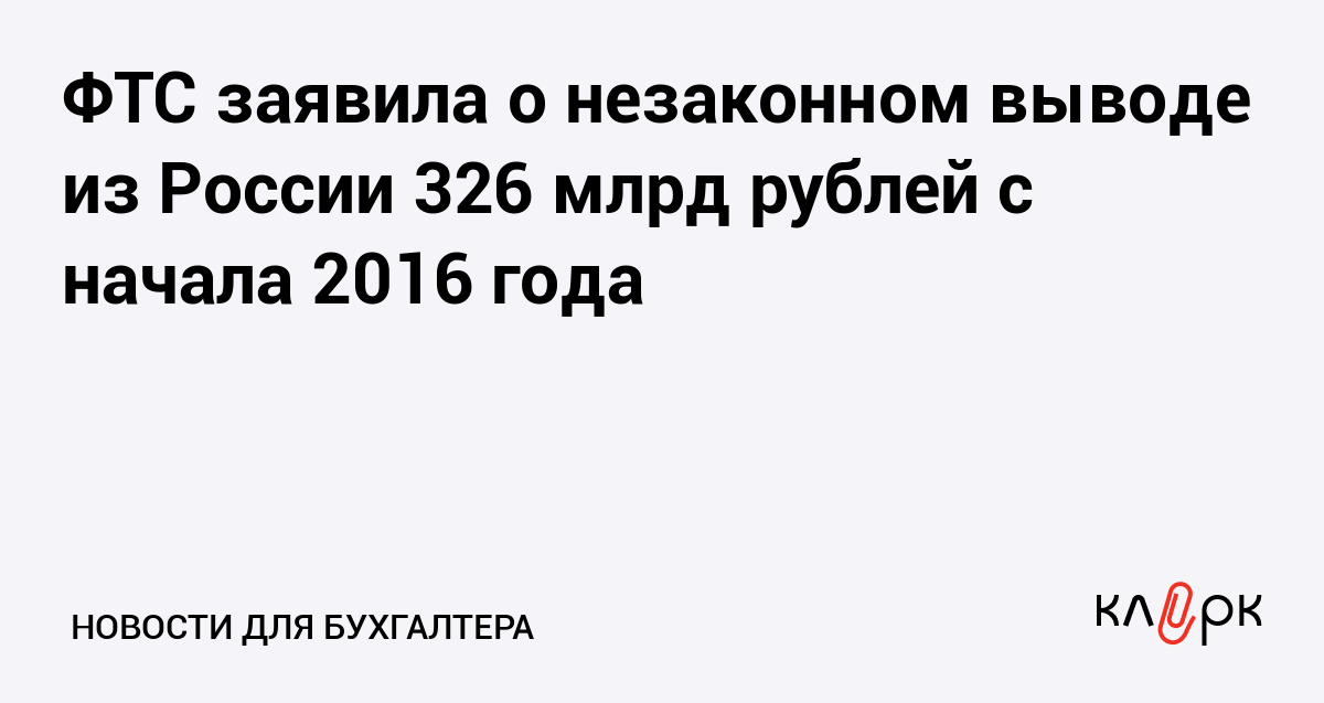 Федеральная таможенная служба (ФТС) с 1 января 2016 года по 31 марта 2017 года выявила вывод средств из России за рубеж на 326,1 млрд рублей.