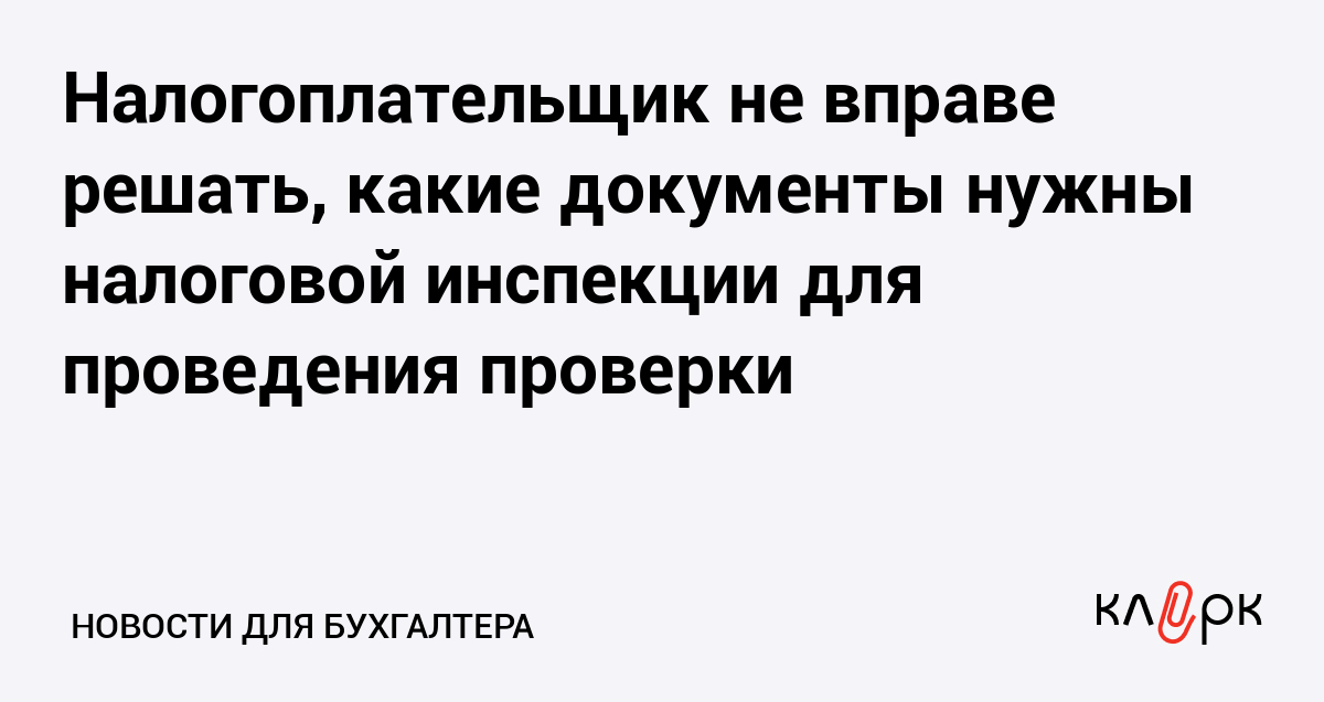 Налогоплательщик не вправе решать, какие документы нужны налоговой инспекции для проведения проверки