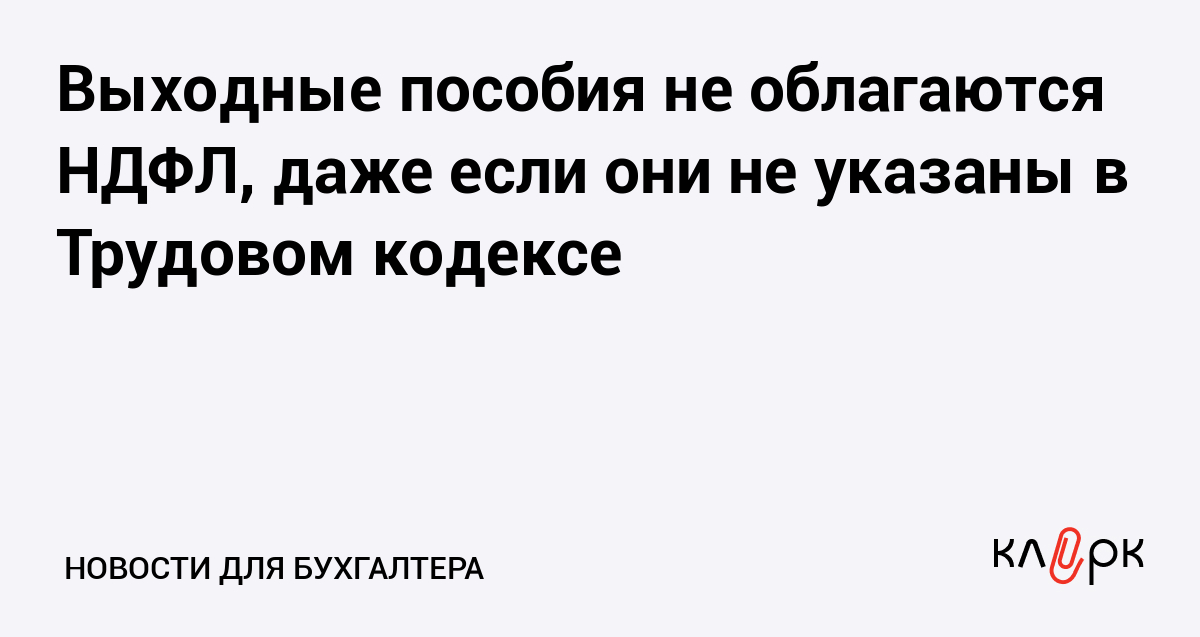 Выходные пособия не облагаются НДФЛ, даже если они не указаны в Трудовом кодексе