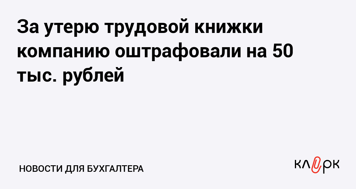 За утерю трудовой книжки компанию оштрафовали на 50 тыс. рублей