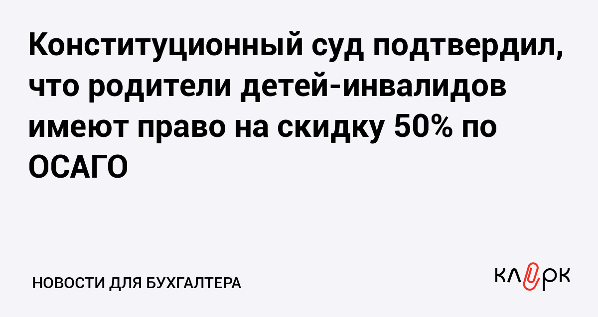 Конституционный суд подтвердил, что родители детей-инвалидов имеют право на скидку 50% по ОСАГО