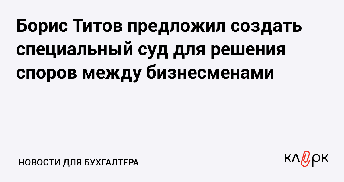 Борис Титов предложил создать специальный суд для решения споров между бизнесменами