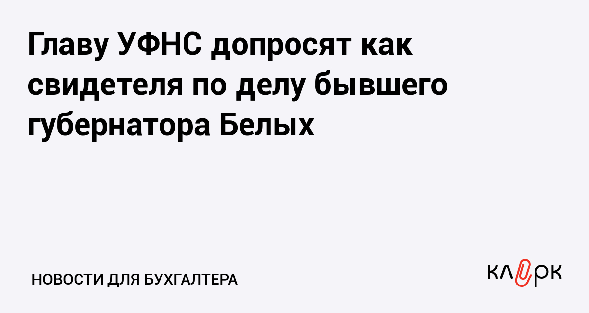 Главу УФНС допросят как свидетеля по делу бывшего губернатора Белых