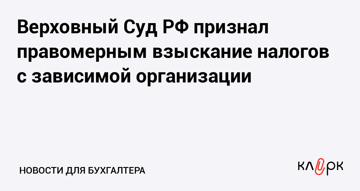 Верховный Суд РФ признал правомерным взыскание налогов с зависимой организации