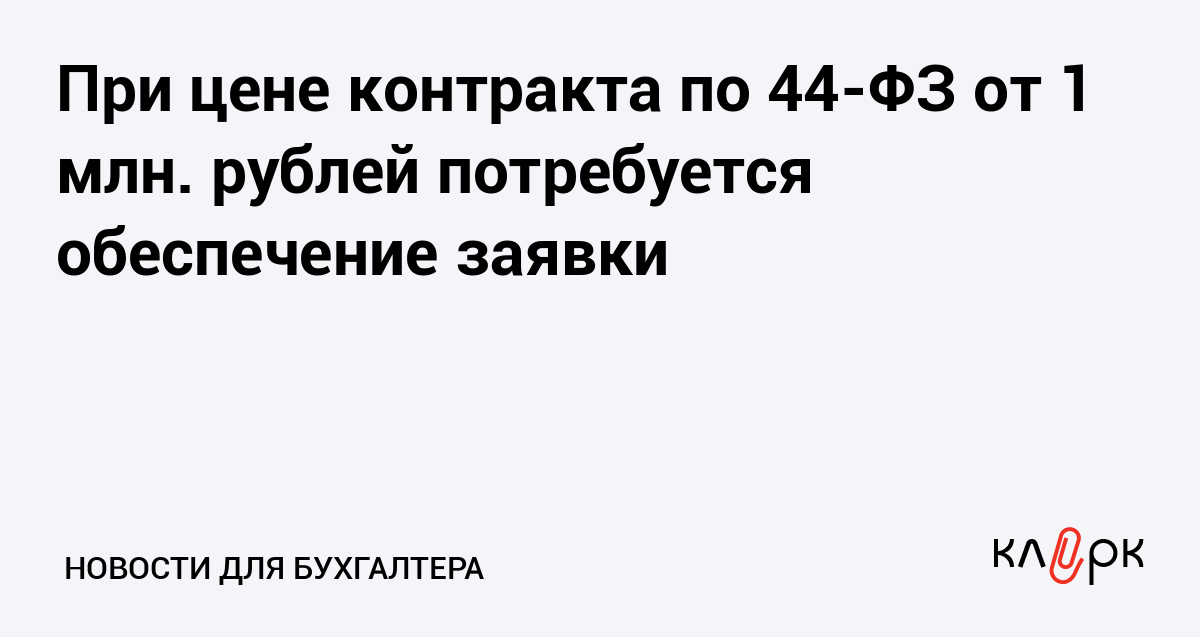 При цене контракта по 44-ФЗ от 1 млн. рублей потребуется обеспечение заявки