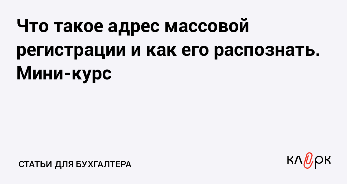 В приказе ФНС от 29.12.2006 №САЭ-3-09/911@ «массовый адрес» определяется как ситуация, при которой один и тот же адрес указан при госрегистрации несколькими юридическими лицами.