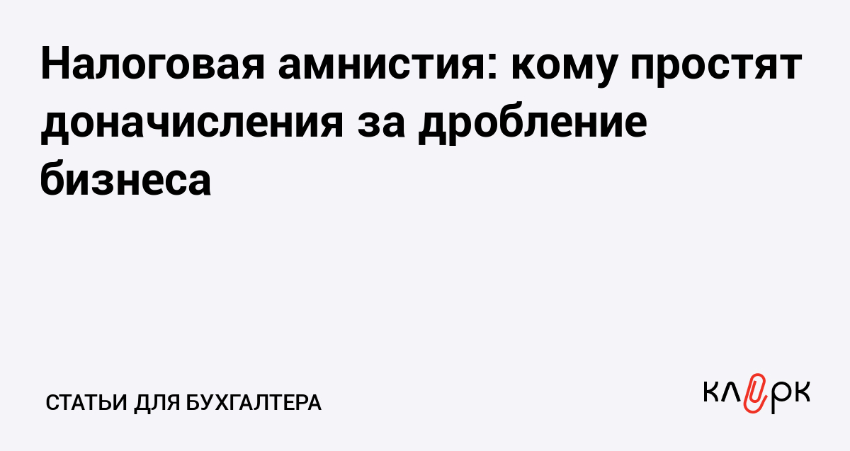 Дробление (амнистия по которому стартовала 12.07.2024, согласно ст. 8 закона от 12.07.2024 № 176-ФЗ, далее — закон № 176-ФЗ) — это налоговая схема.