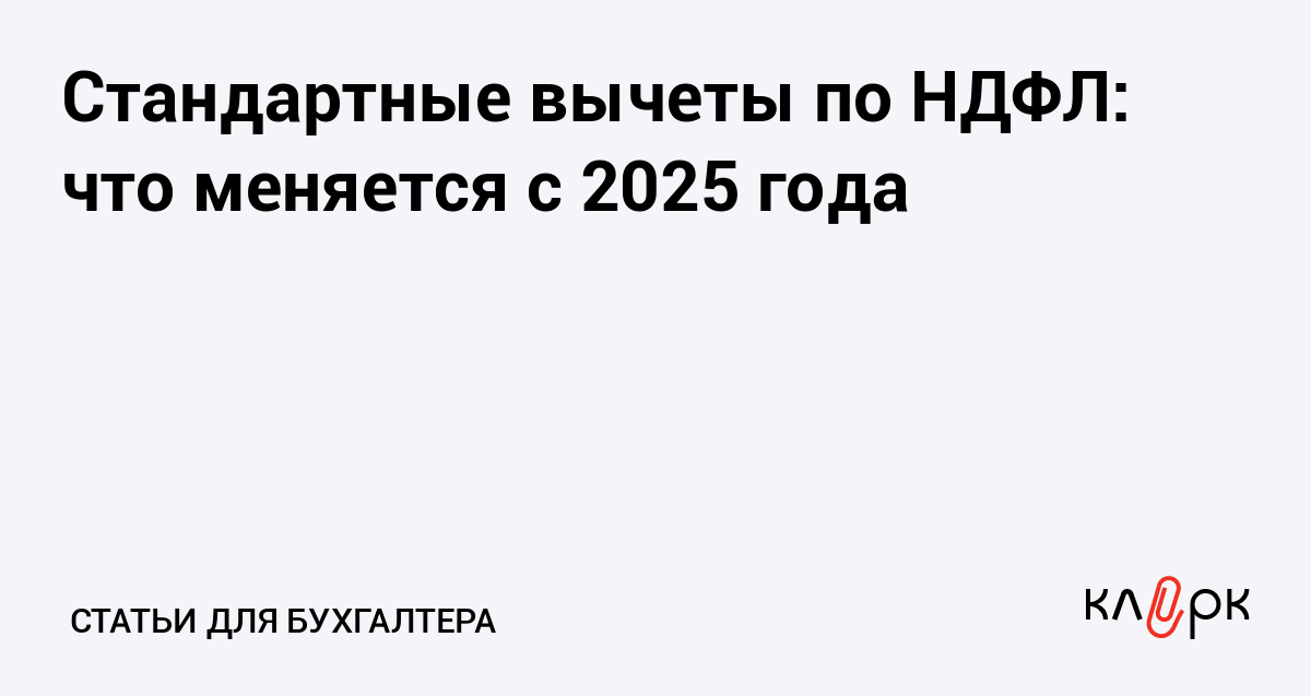 С 2025 года меняются параметры стандартных налоговых вычетов по НДФЛ.