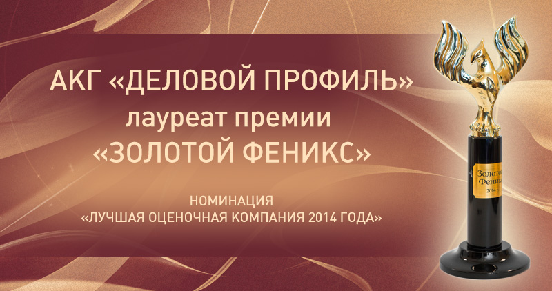 Аудиторско-консалтинговая группа «ДЕЛОВОЙ ПРОФИЛЬ» стала лауреатом объединенной итоговой профессиональной премии «ЗОЛОТОЙ ФЕНИКС» в номинации «Лучшая оценочная компания». Эта награда свидетельствует о высокой компетенции Группы в сфере оценочных услуг, соответствии ее деятельности этике ведения бизнеса, умении специалистов АКГ «ДЕЛОВОЙ ПРОФИЛЬ» эффективно разрабатывать и осуществлять оценочные проекты различной степени сложности.