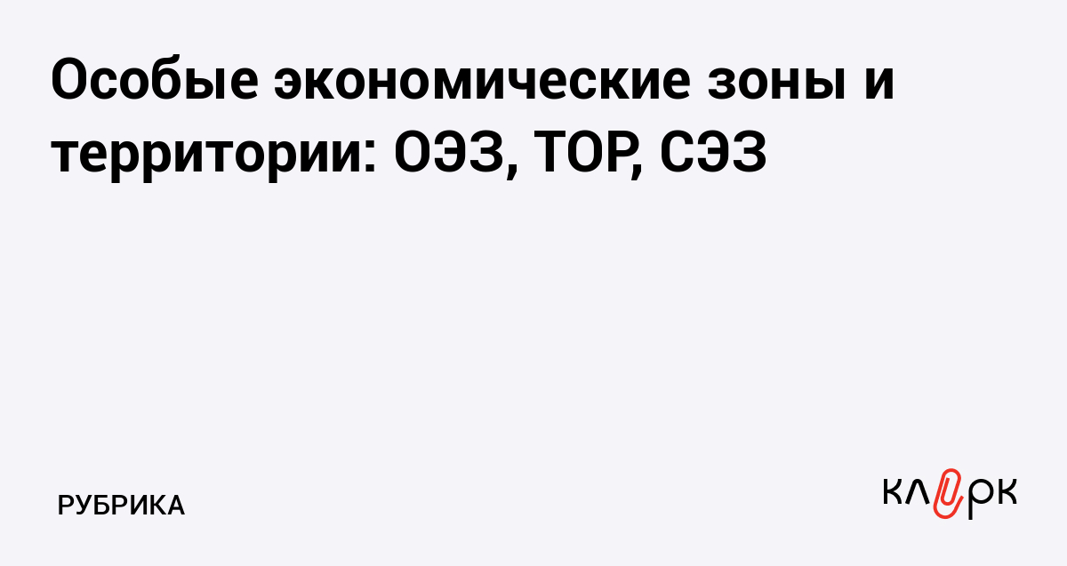Особые экономические зоны и территории: ОЭЗ, ТОР, СЭЗ