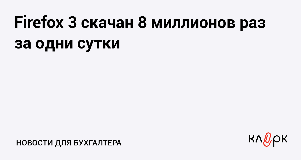 За сутки браузер Mozilla Firefox 3, официально вышедший 17 июня, скачали более восьми миллионов раз. Firefox 2 за первые сутки скачали лишь 1,6 миллиона пользователей.