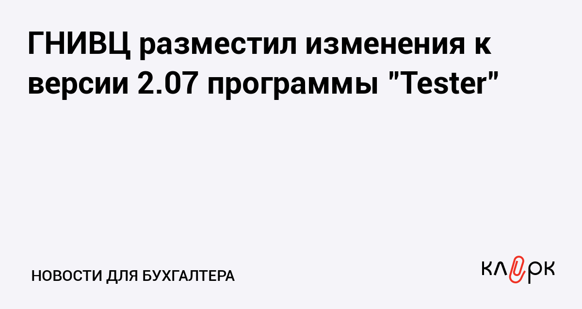 На сайте ГНИВЦ размещены изменения к версии 2.07 (2.07.1) программы «Tester».