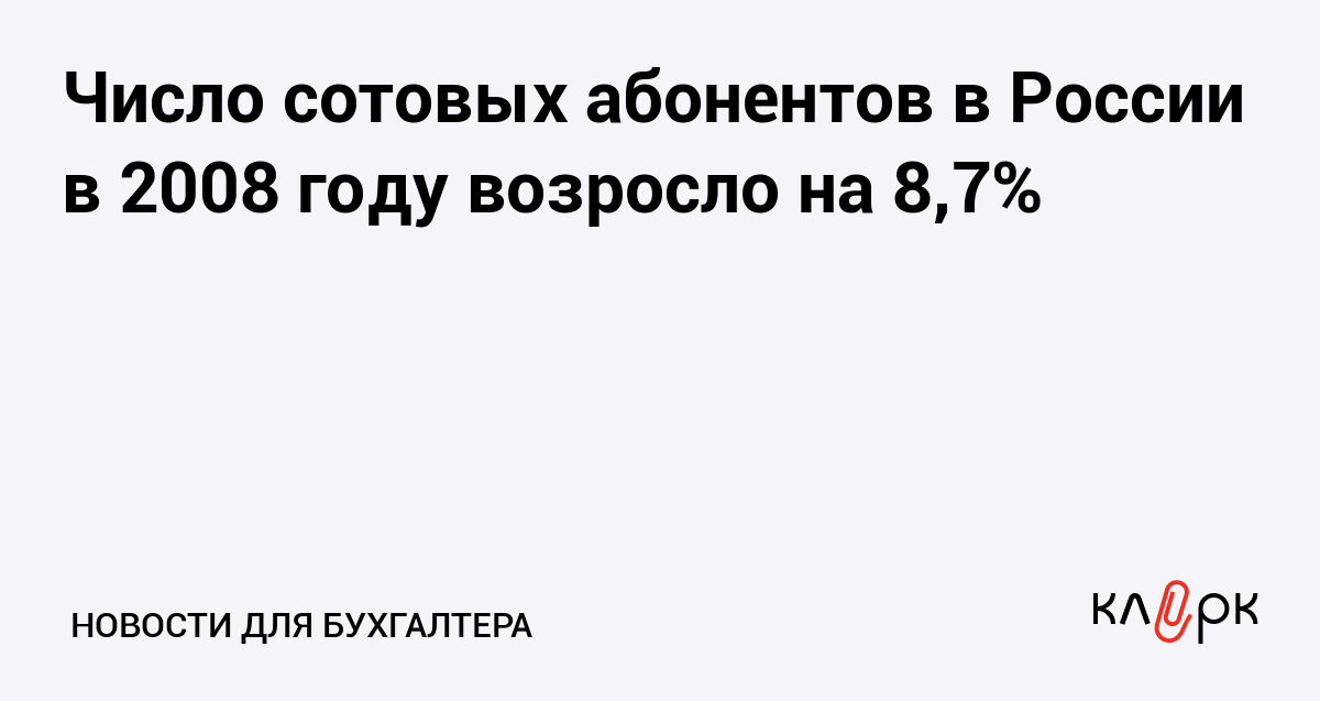 Число сотовых абонентов в России в 2008 году возросло на 8,7%
