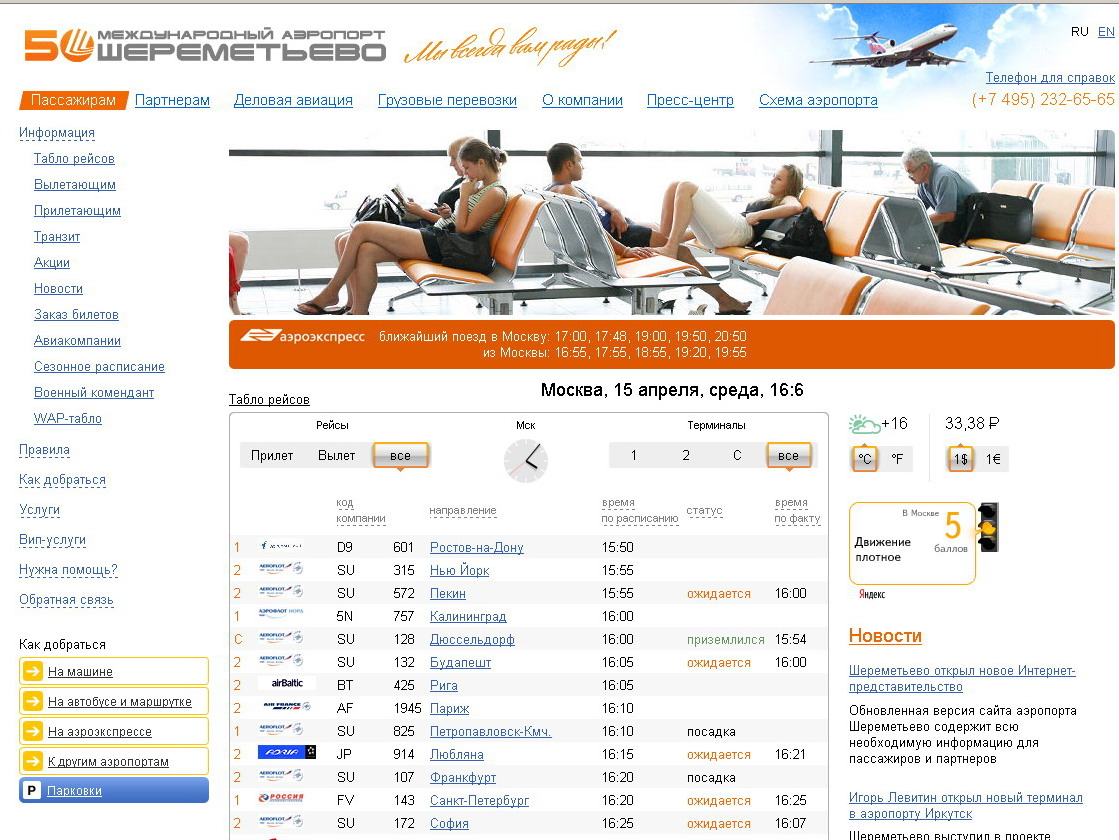 Аэропорт "Шереметьево" запустил новую версию сайта