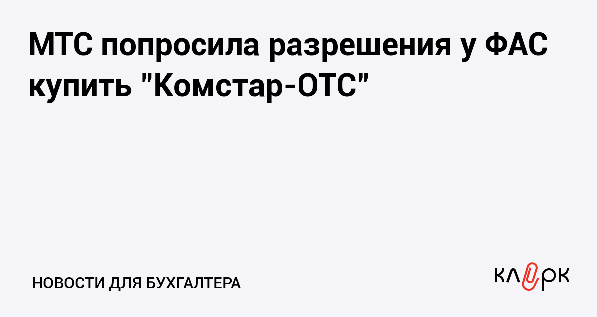 Оператор МТС обратился в Федеральную антимонопольную службу за разрешением на приобретение до 100% акций "Комстар-Объединенные ТелеСистемы". В случае успешного завершения сделки по приобретению, на базе двух компаний будет создан интегрированный телекоммуникационный оператор в России и странах СНГ, что позволит ускорить развитие и распространение коммуникационных услуг и широкополосного доступа на рынках присутствия МТС.