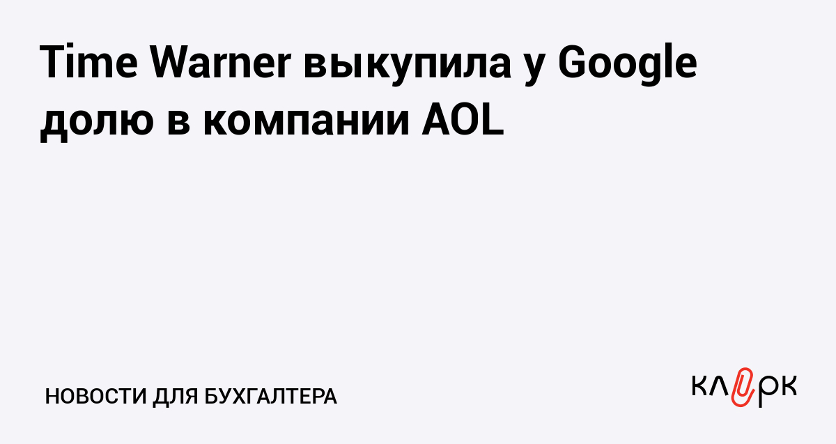 Time Warner выкупила у Google долю в компании AOL в размере 5% за $283 млн. Сделка была завершена в начале июля, сообщает АР. Согласно ее условиям, общая стоимость AOL оценивается в $5,66 млрд. Интернет-гигант приобрел долю в AOL в 2006 г. за $1 млрд., но, по данным на начало 2009 г., она подешевела более чем на 70% - до $274 млн.