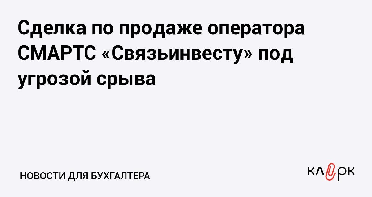 Сделка по продаже оператора СМАРТС «Связьинвесту» под угрозой срыва