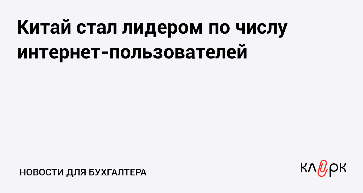 Китай занял первое место по количеству пользователей сети интернет, говорится в распространенной Госсоветом КНР книге «Ситуация в китайском интернете». Сегодня в Китае более 380 млн пользователей интернета, и по этому показателю страна вышла на средний мировой уровень, отмечает Международное радио Китая, ознакомившееся с текстом книги. Китайское правительство рассматривает интернет как важный инструмент совершенствования всех сторон жизни и как средство повышения уровня образованности китайского общества, развития экономики, науки и техники.