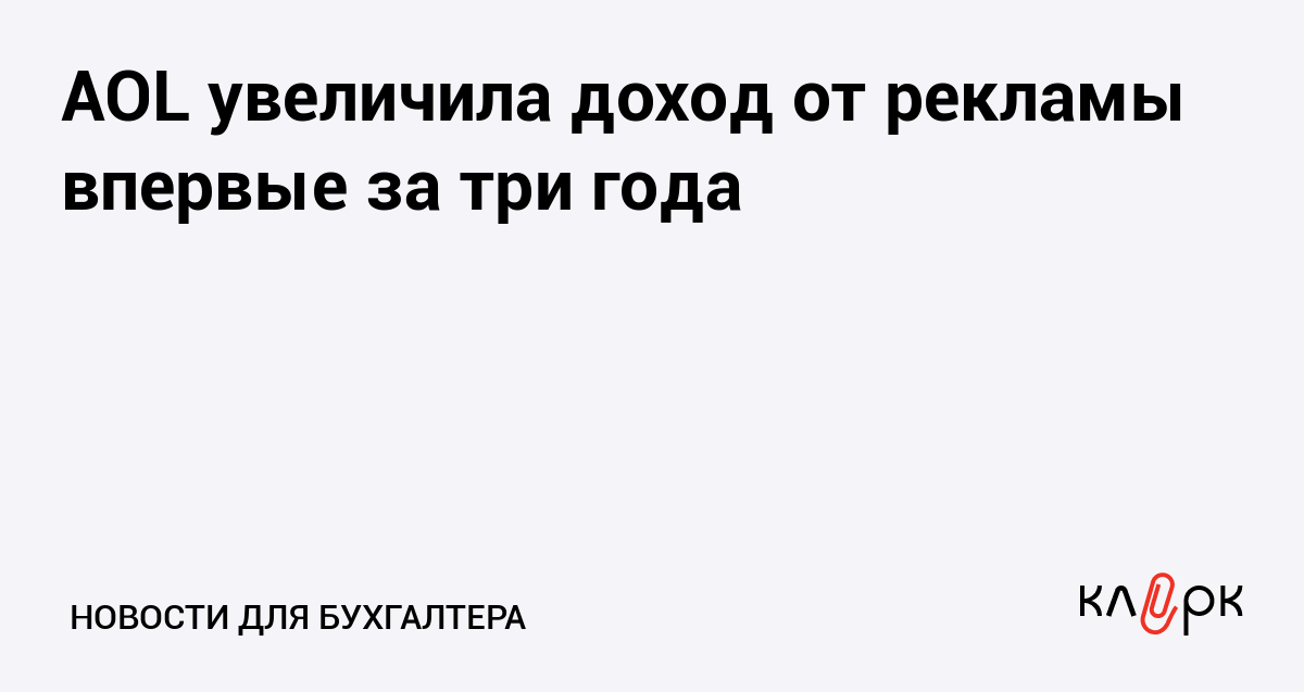 Согласно отчету AOL за второй квартал этого года, доход от продажи рекламы компании вырос на 5% и составил 319 миллионов долларов по сравнению с показателями аналогичного периода прошлого года, сообщается на корпоративном сайте компании. По мнению экспертов, основной рост произошел за счет увеличения количества показов в США на 16% и размещения рекламы в сторонних сетях, в частности, ad.com на 29%, пишет Sostav.ru.
