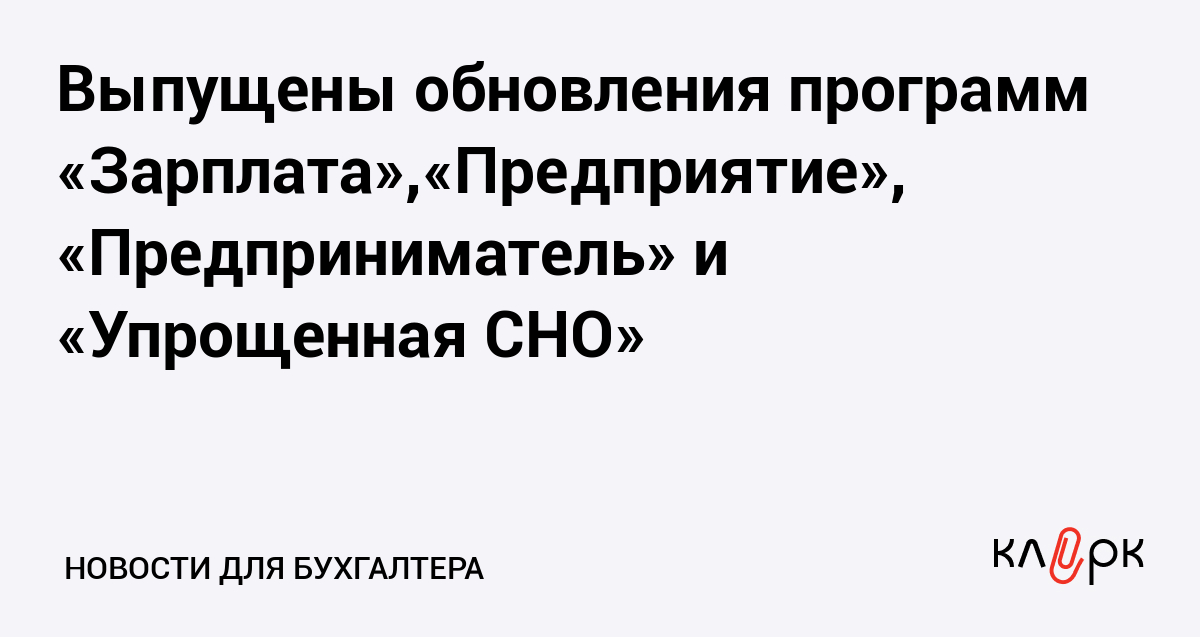 Выпущены обновления программ «Зарплата»,«Предприятие», «Предприниматель» и «Упрощенная СНО»