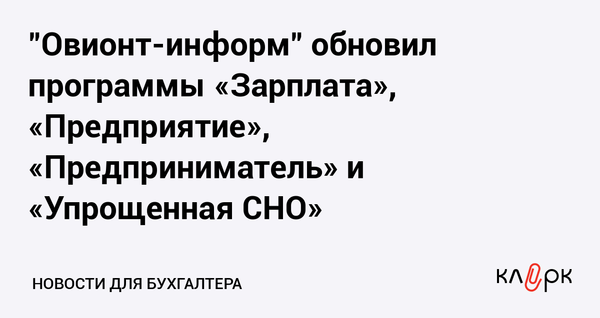 "Овионт-информ" обновил программы «Зарплата», «Предприятие», «Предприниматель» и «Упрощенная СНО»